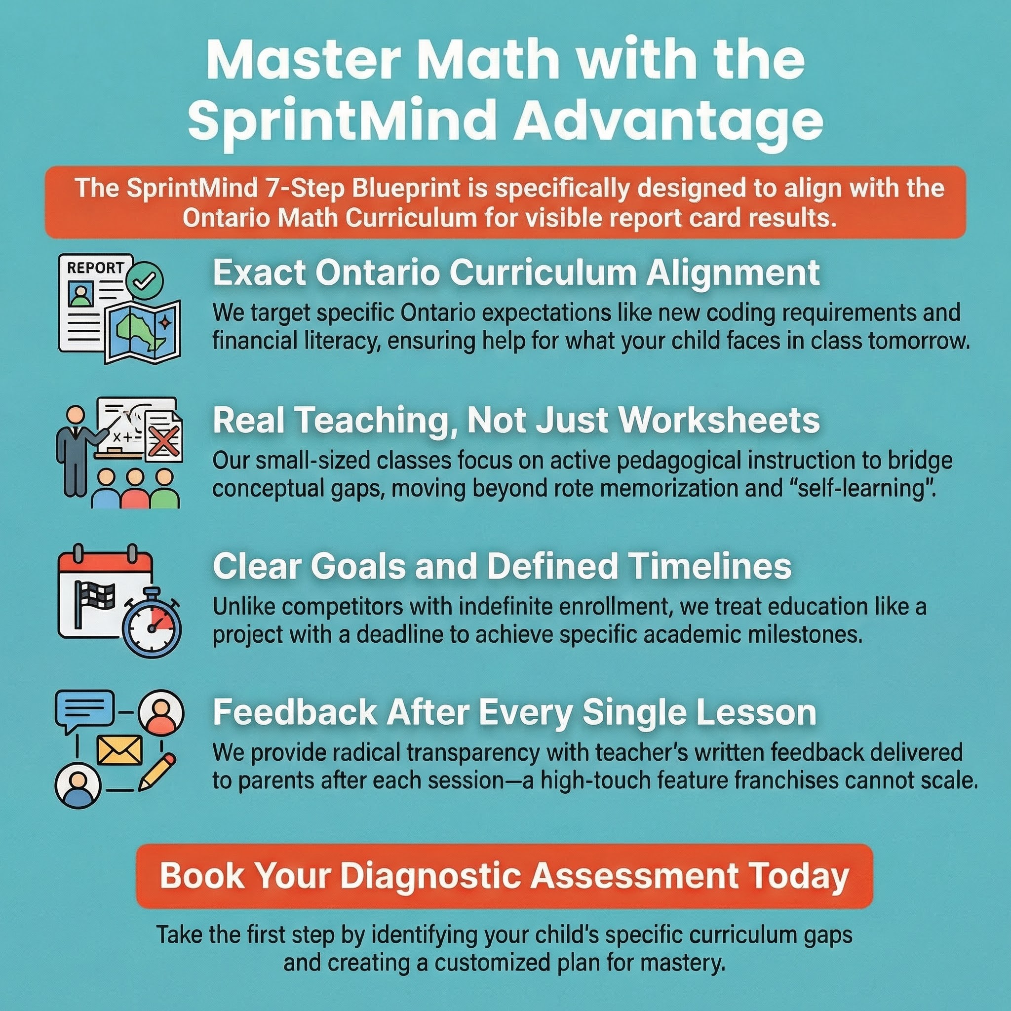 "SprintMind Do Not sell worksheets; We provide you the roadmap to mastering the Ontario Math Curriculum."